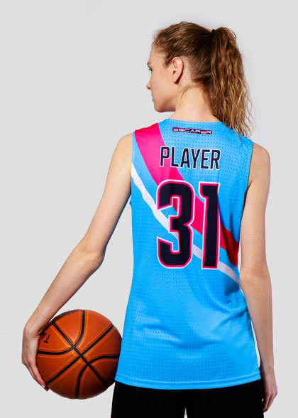 EscaperОписание: Женская односторонняя баскетбольная майка полуприлегающего силуэта. Без боковых вставок. V-образная горловина с фигурной вставкой по центру. Сублимация изделия обеспечивает возможность выбрать любые цвета и дизайн которые не выцветут за любое количество стирок. Полная сублимация — любой цвет и дизайн (уже входит в стоимость).