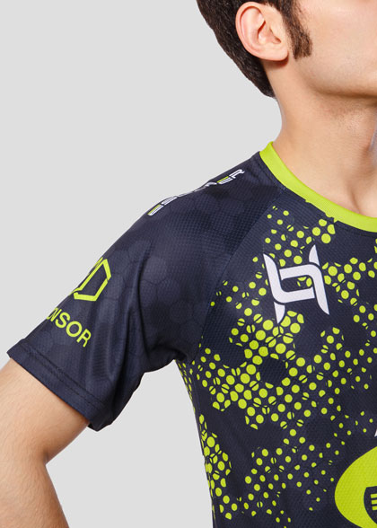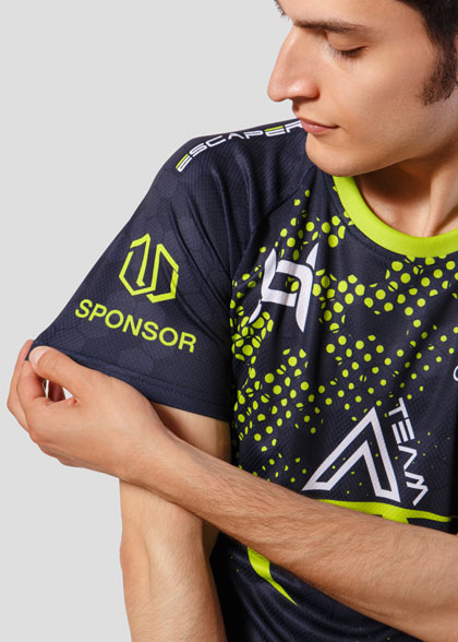 EscaperОписание: Мужская футболка для киберспортсмена. Полуприлегающий силуэт, рукав реглан без манжеты. Круглая горловина из мягкой эластичной рибаны. Мягкий материал обладает воздухопроницаемыми свойствами, позволяя коже дышать. А также впитывает влагу и быстро сохнет, что максимально сохраняет игроку комфорт во время матча. Полная сублимация изделия позволяет выбрать любой цвет и дизайн (уже входит в стоимость), который выдержит многочисленные стирки без потери цвета и качественных свойств материала.