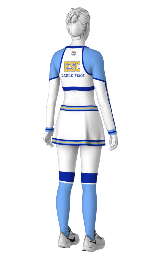 EscaperОписание: Комплект чирлидера женский: топ и юбка. Топ короткий с втачным длинным рукавом, на широкой манжете. Вырез декольте. Юбка чуть расклешенная на подкладке. Шортики внутри. Полная сублимация — любой цвет и дизайн (уже входит в стоимость). Возможно дополнить комплект гетрами и бантом.